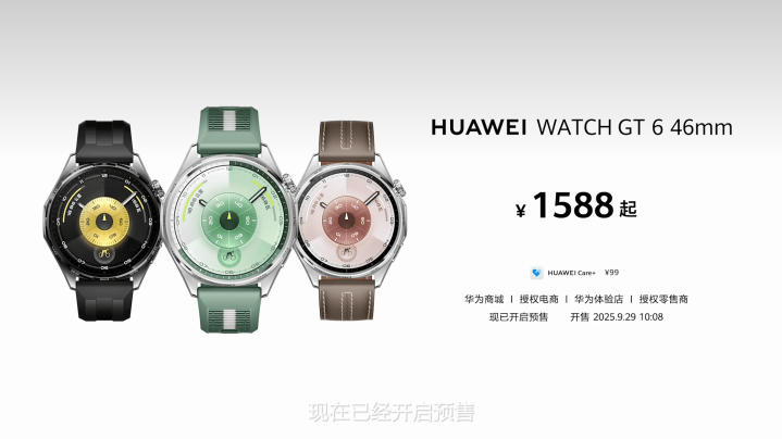 HUAWEI WATCH GT 6 46mm 1588元起,HUAWEI WATCH GT 6 41mm 1488元起,现已开启预售,9月29日正式开售;HUAWEI WATCH GT 6 Pro 46mm 2488元起,10月14日开启预售,10月20日正式开售。届时,用户可登陆华为商城及各大授权电商平台,或前往华为体验店、华为授权零售门店进行购买。